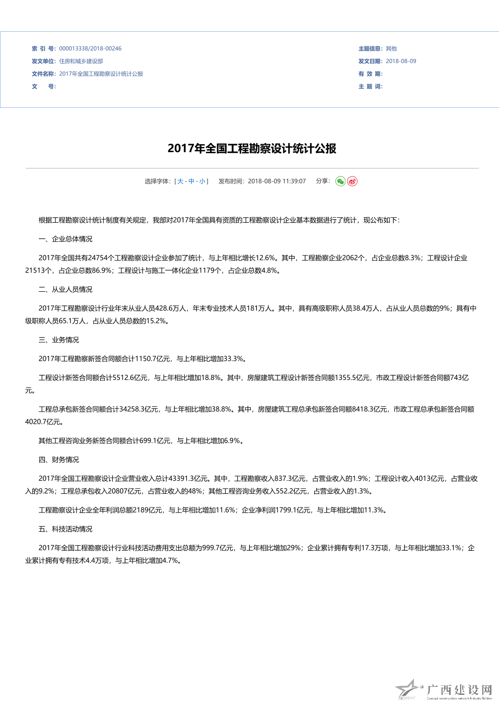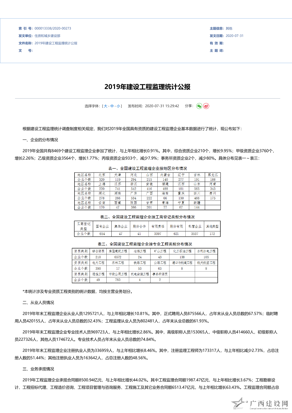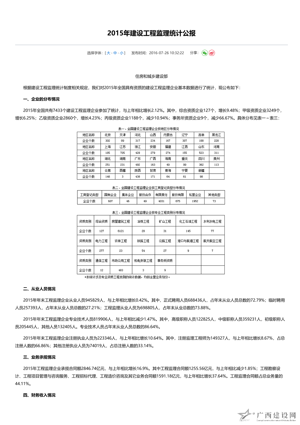 2017年全國建設工程監理統計公報