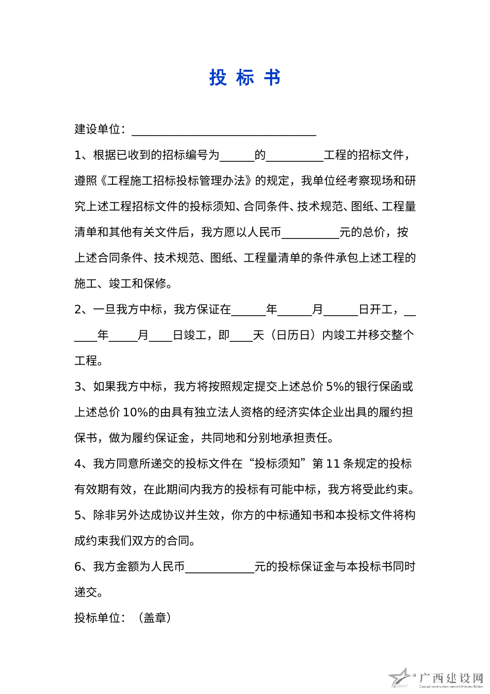 工程投標(biāo)書范本 (2)