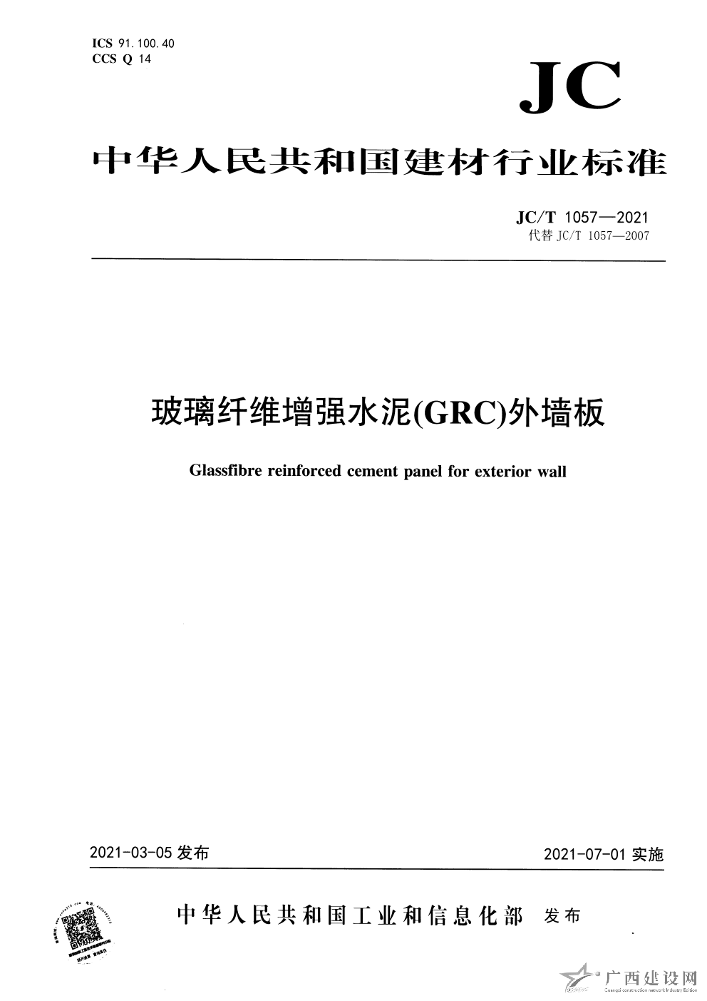 JC T 854-2021 玻璃纖維增強水泥(GRC)排氣管道
