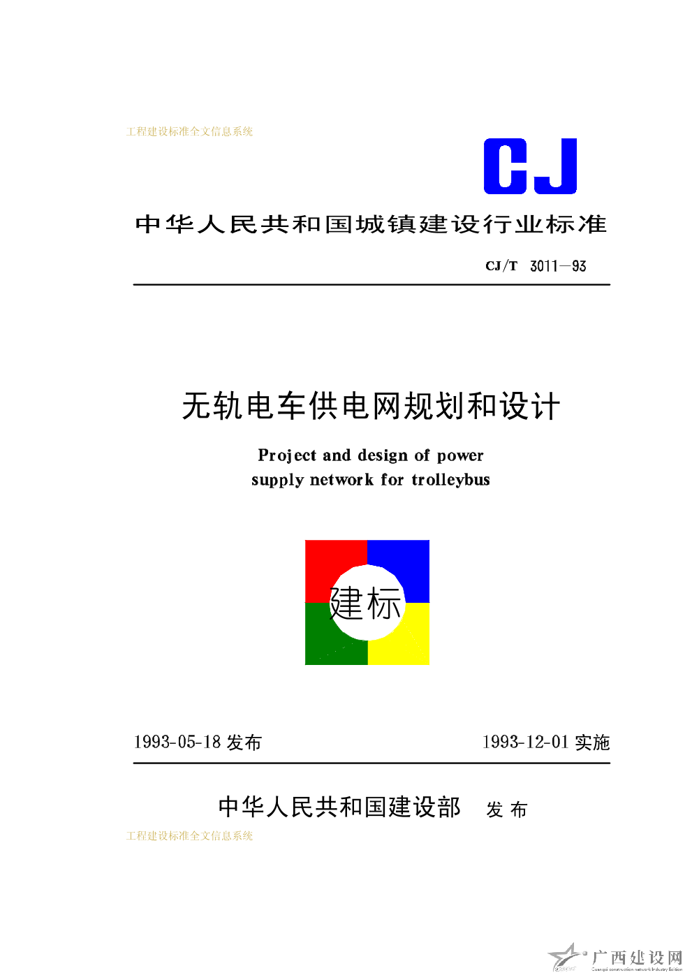 無軌電車供電網規劃和設計 CJ/T3011-93