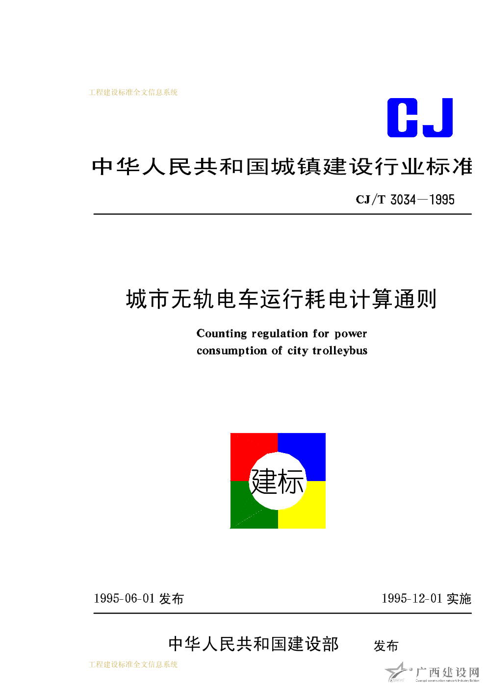 城市無軌電車運行耗電計算通則 CJ/T3034-1995