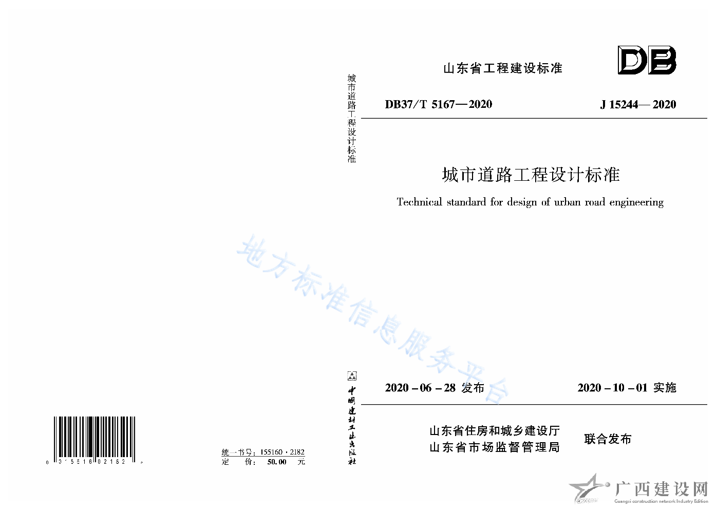 DB37T5167-2020城市道路工程設(shè)計(jì)標(biāo)準(zhǔn)(山東省市場(chǎng)監(jiān)督管理局)