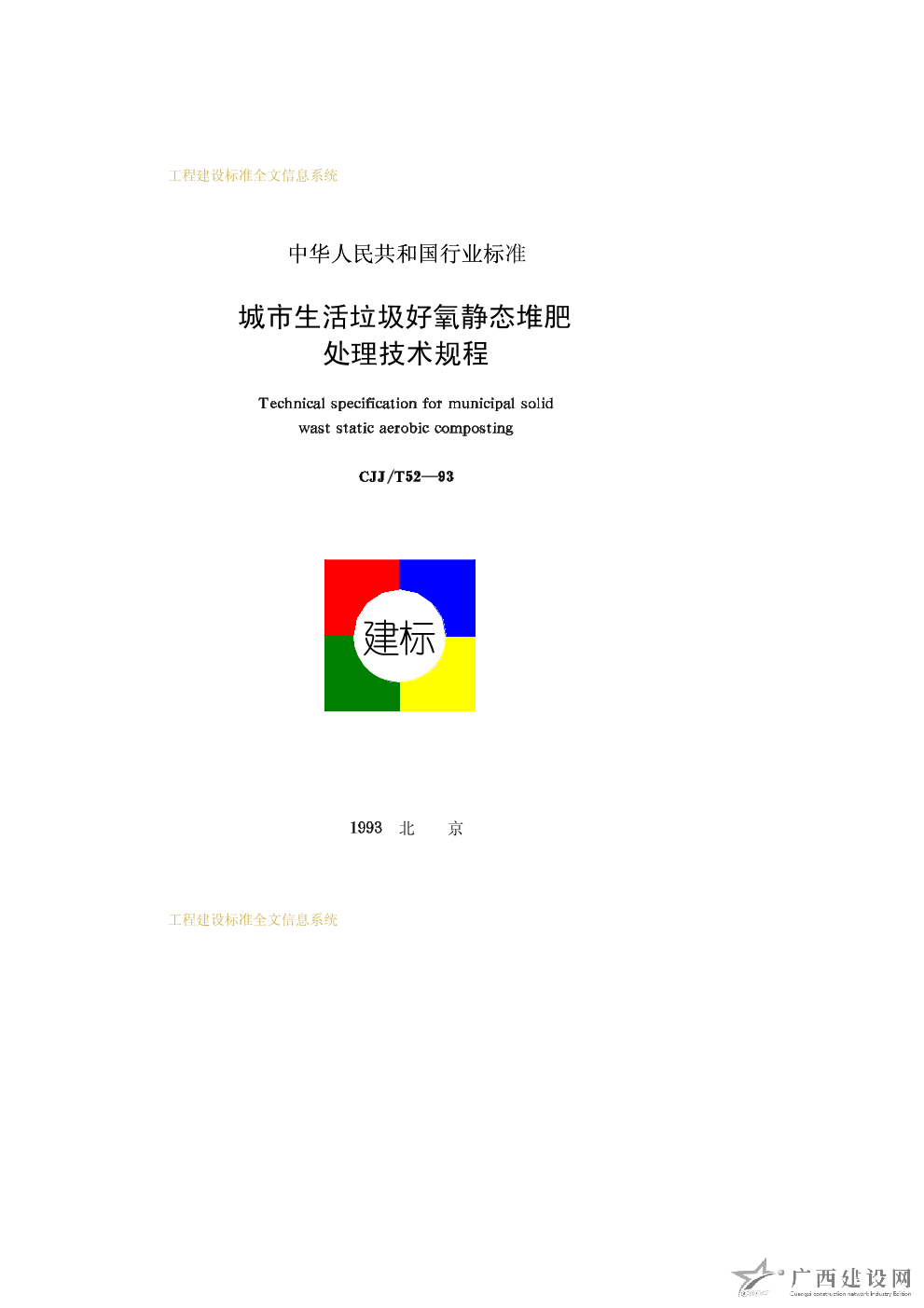 城市生活垃圾好氧靜態堆肥處理技術規程 CJJ/T52—93