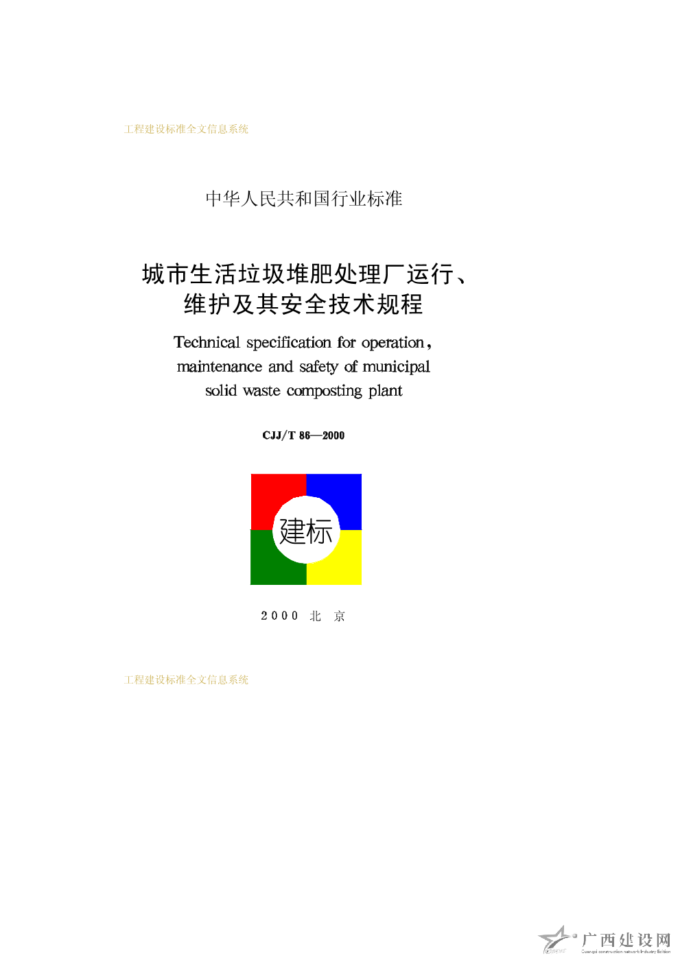 城市生活垃圾堆肥處理廠運行、維護及其安全技術規程 CJJ/T86—2000