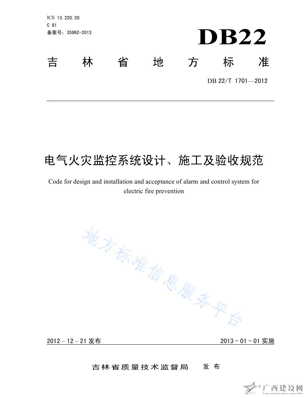 DB22 T277-2011建筑電氣防火檢驗規程